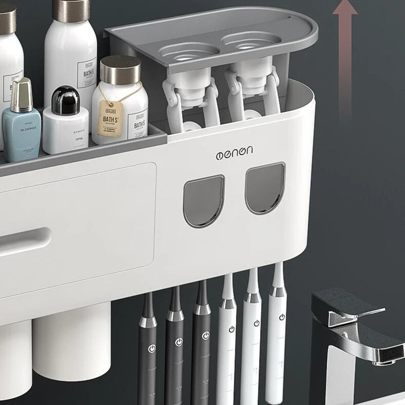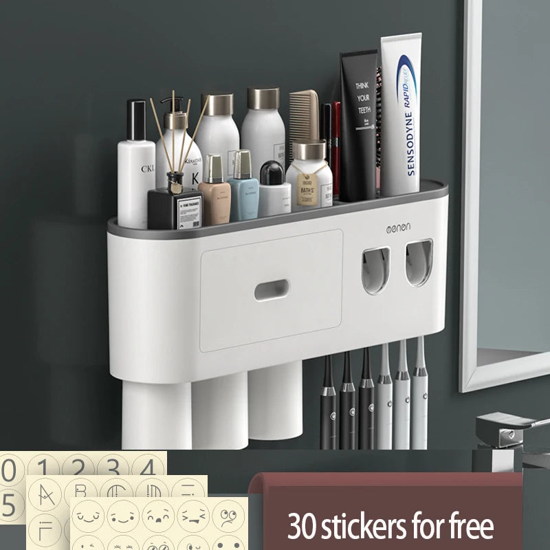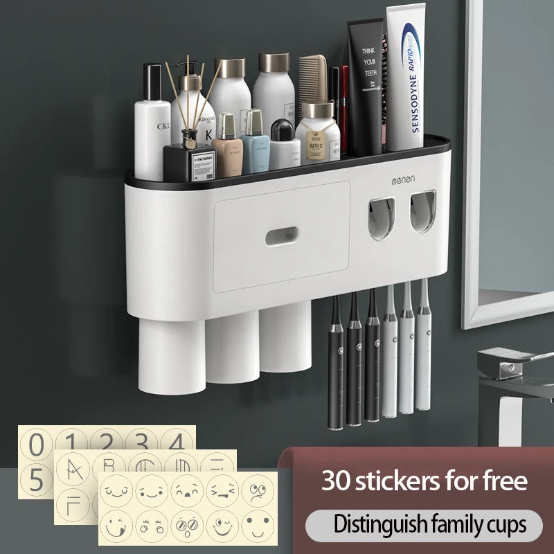 Magnetic Toothbrush Holder Storage Rack Automatic Toothpaste Dispenser Wall-Mounted Waterproof Bathroom Storage Accessories Set