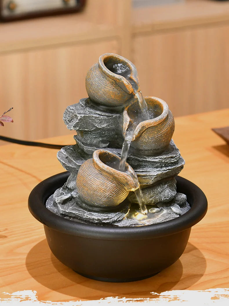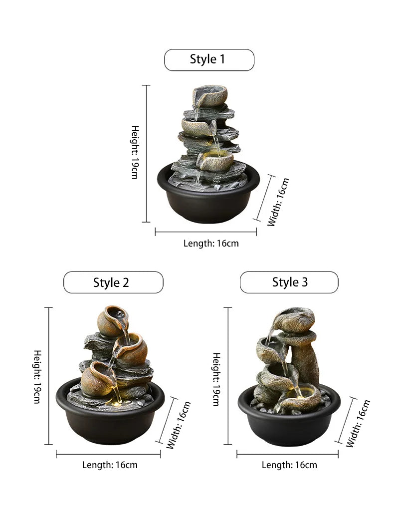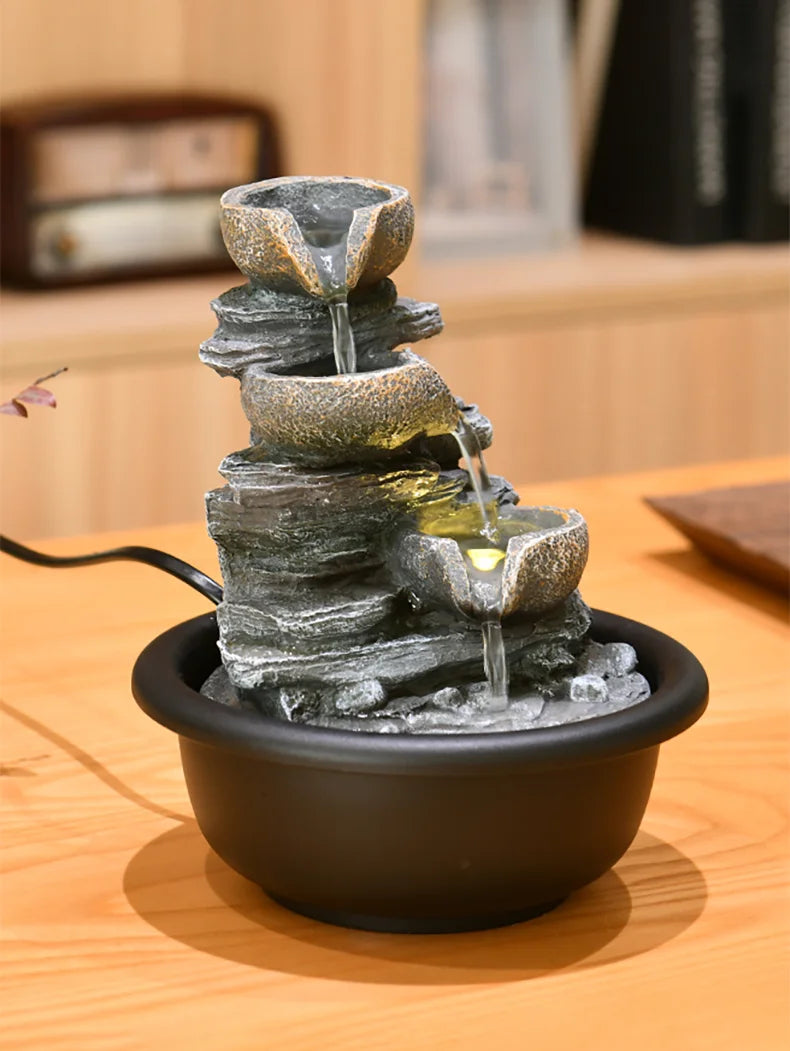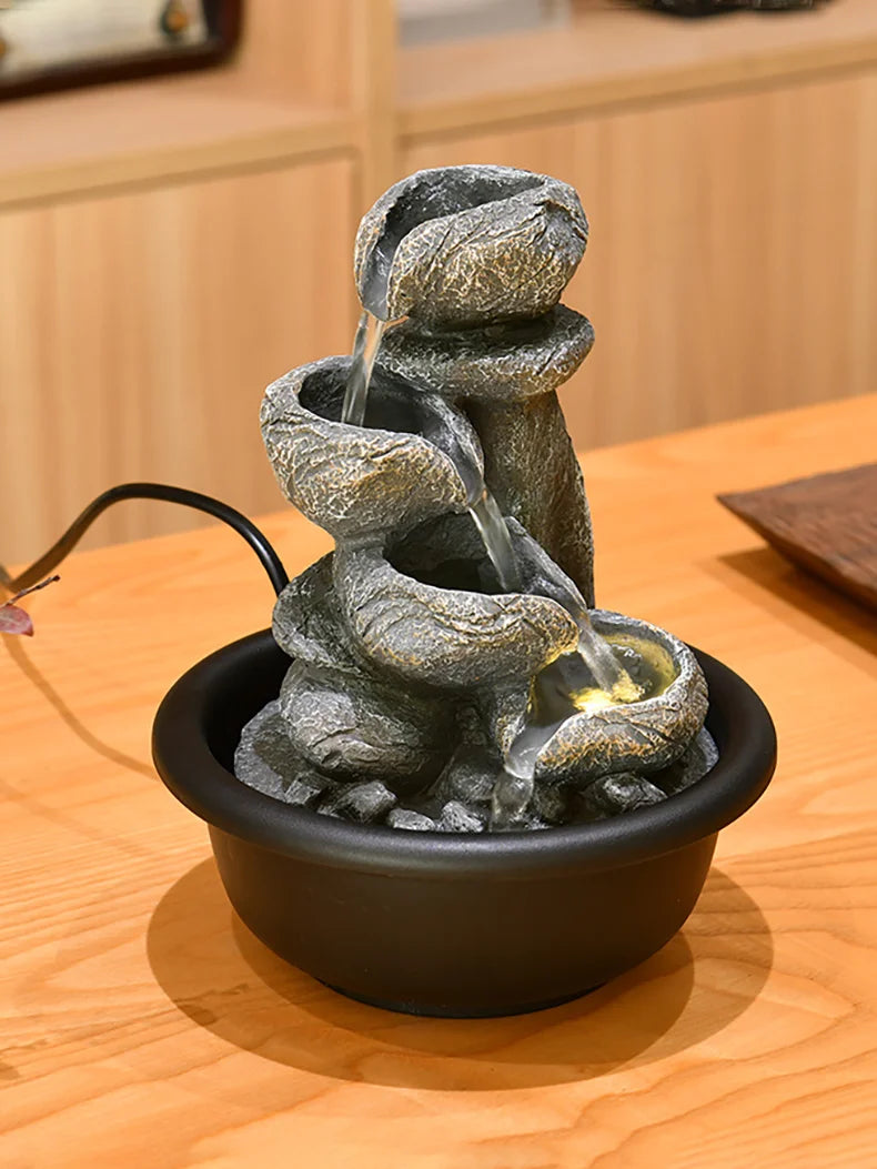 Experience the tranquil beauty of our Small Desktop Waterfall Fountain—a handcrafted gem that blends minimalist elegance with Eastern Zen inspiration. Perfect for adding a touch of modern luxury to your home or office, this flowing water feature not only beautifies your environment but also carries the auspicious meaning of attracting wealth and harmony. Made with meticulous care, it creates a soothing ambiance with the gentle sound of cascading water, ideal for relaxation and Feng Shui enhancement.